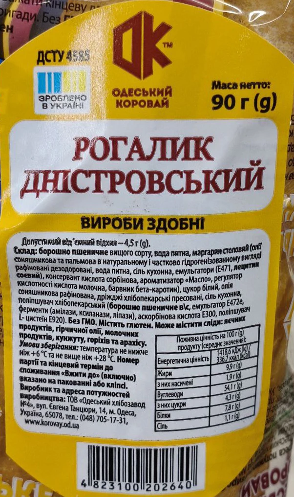 - Рогалик Дністровський Одеський хлібозавод №4, 90 г