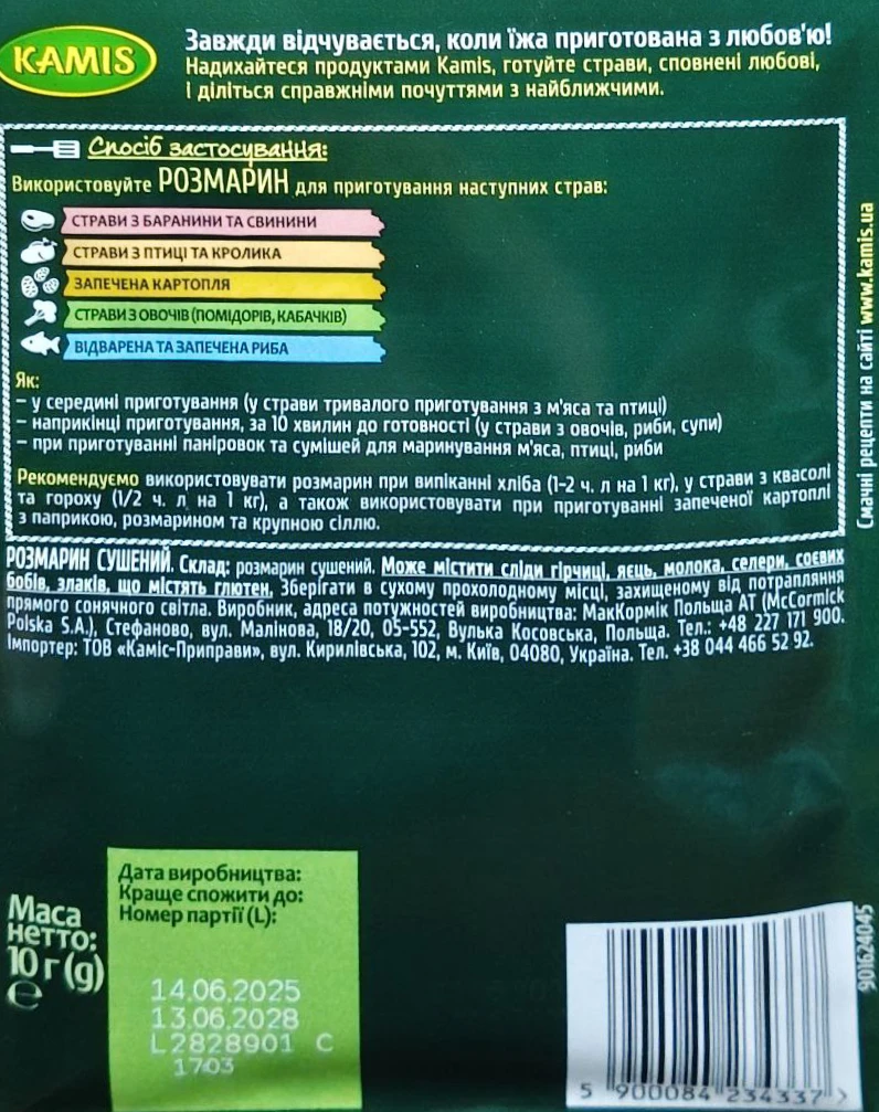 - Розмарин сушений Kamis 10г