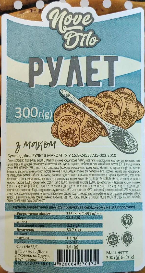 - Рулет Нове Діло з маком, 300 г
