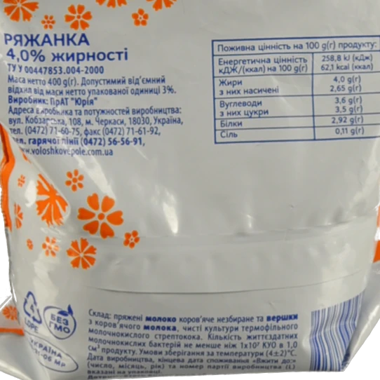 - Ряжанка 4% Домашня Волошкове поле м/у 400г