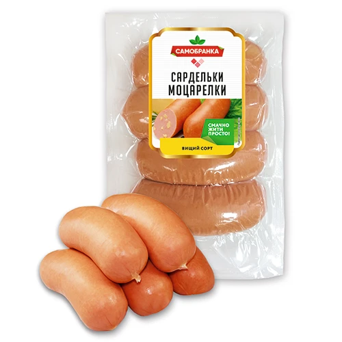 - Сардельки Самобранка Моцарелки варені, вищого ґатунку