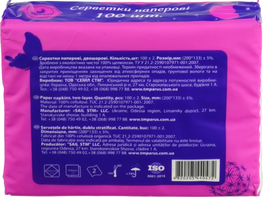 - Серветка паперова Parus 2шар.100х64 біла