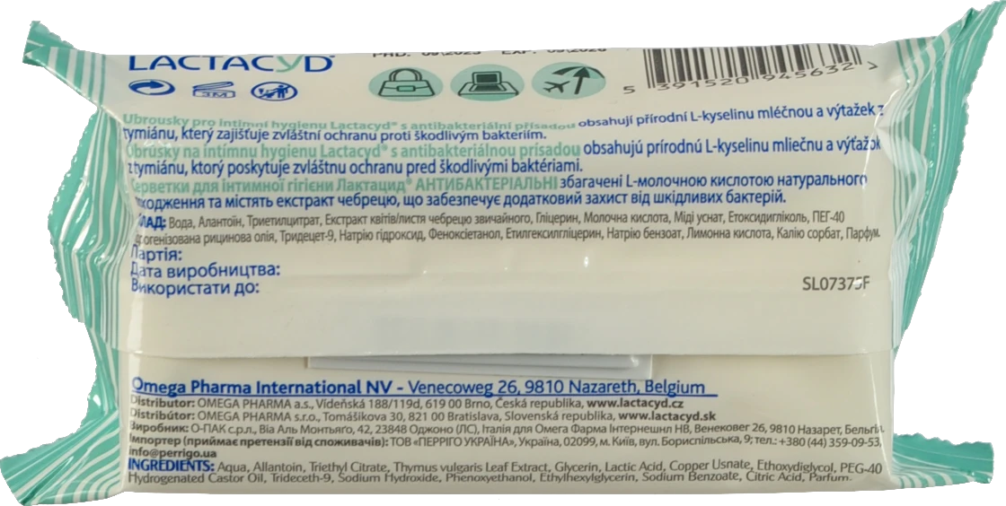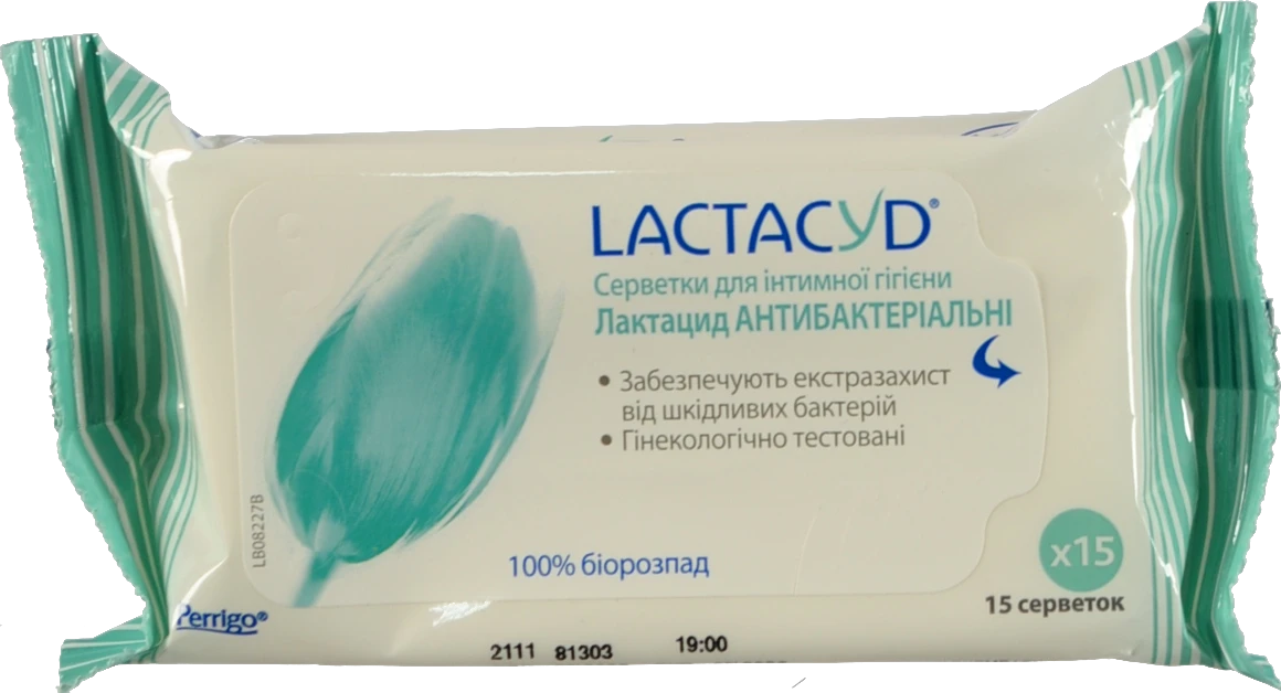 - Серветки для інтимної гігієни Антибактеріальні Lactacyd 15шт