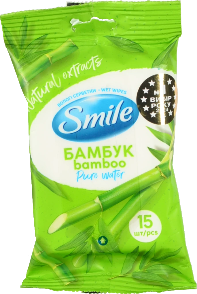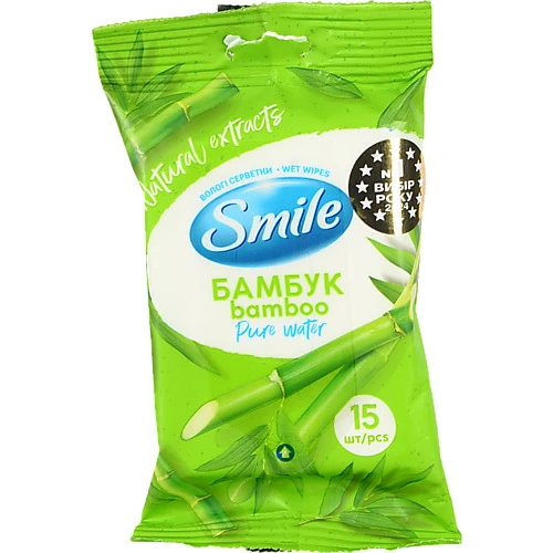 - Серветки вологі Smile 15шт дейлі бамбук чайн