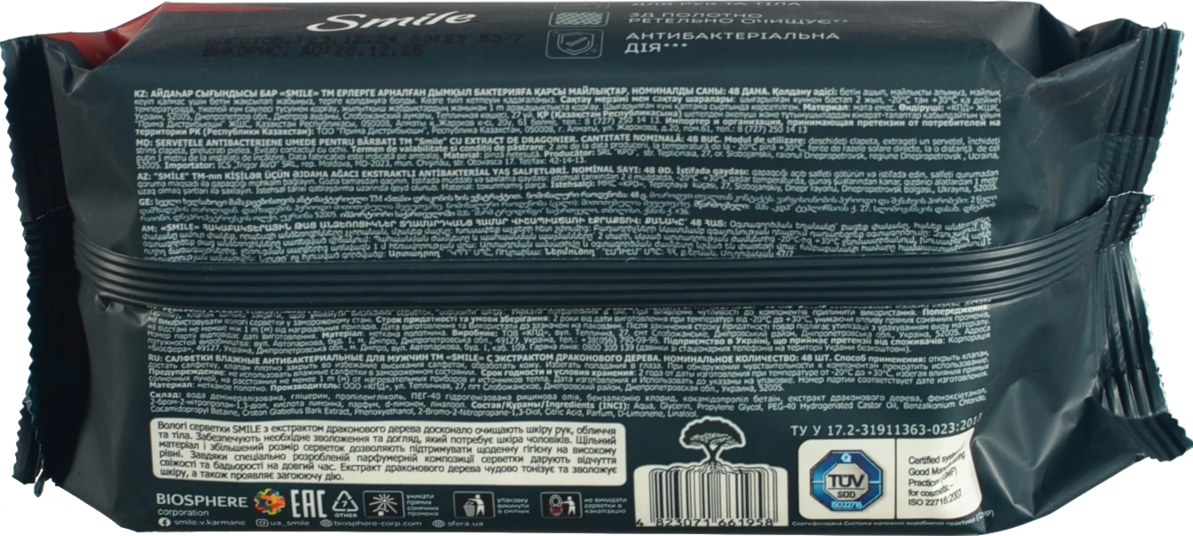 - Серветки вологі Smile 48шт з екстрактом дерева дра