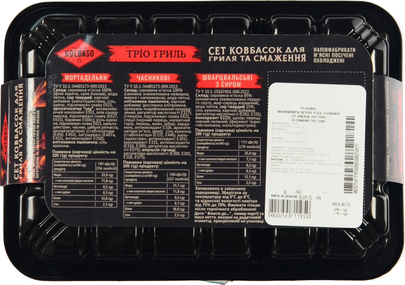 - Сет ковбасок Kolbaso 640г ТРІО ГРИЛЬ д.гриля та смаження газ.пак