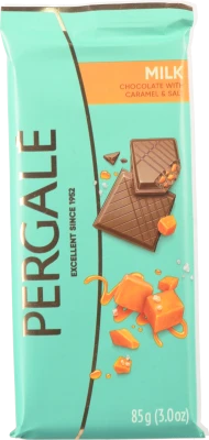 - Шоколад Pergale 85гр молочний з карамеллю та сіллю