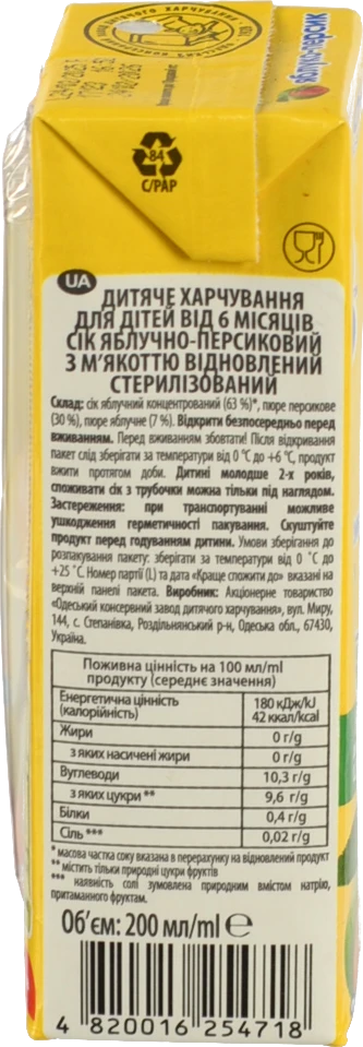 - Сік Чудо-чадо Яблуко-Персик 200мл