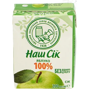 - Сік освітлений відновлений Яблучний Наш сік т/п 200мл