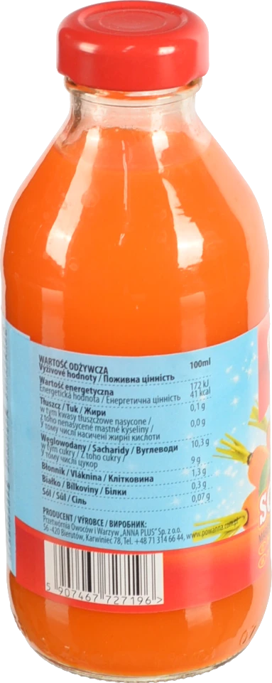 Смак:Моркв’яно-яблучно-апельсиновий, фруктово-цитрусовий, м’який, солодкуватий, освіжаючий