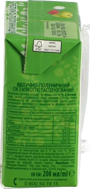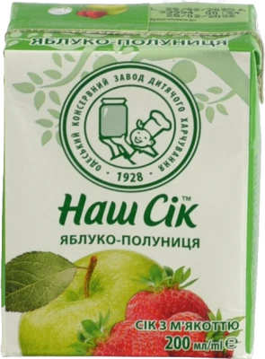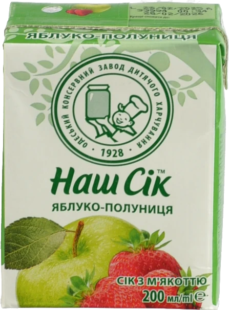 - Сік яблучно-полуничний з м'якоттю Наш сік т/п 0.2л