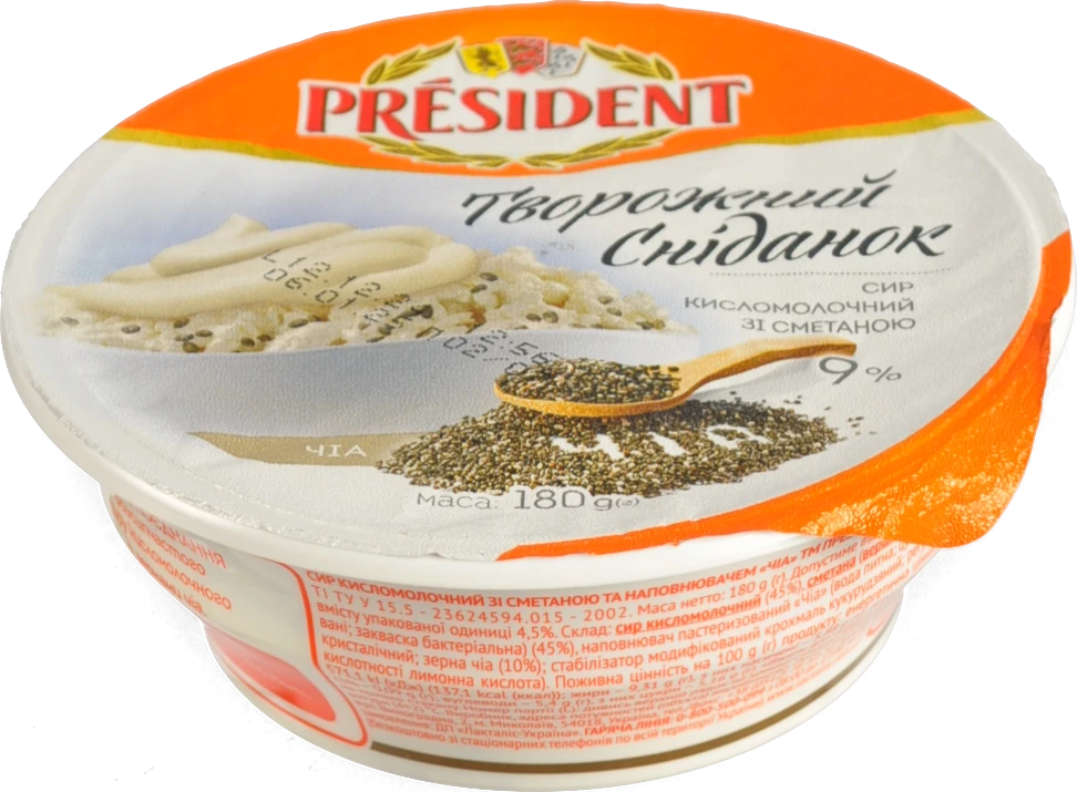 - Сир к.м. Президент 180г 9% зі сметаною та чіа ст.