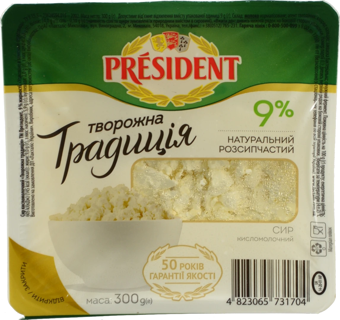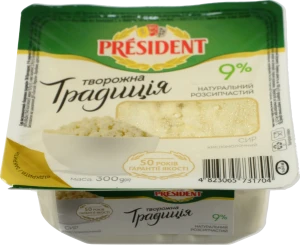 - Сир кисломолочний 9% Творожна традиція President лоток 300г