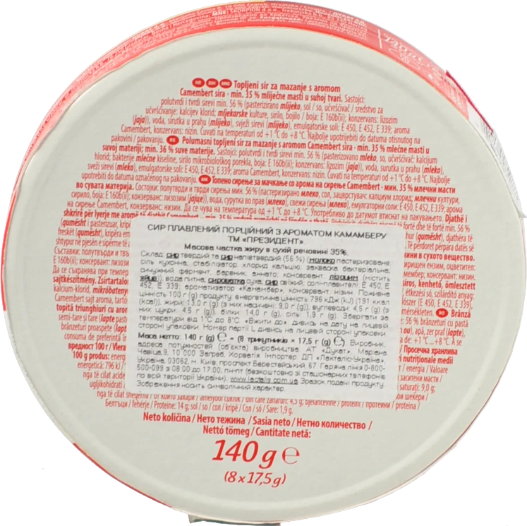 - Сир пл. Президент 140г 35% камамбер сегменти