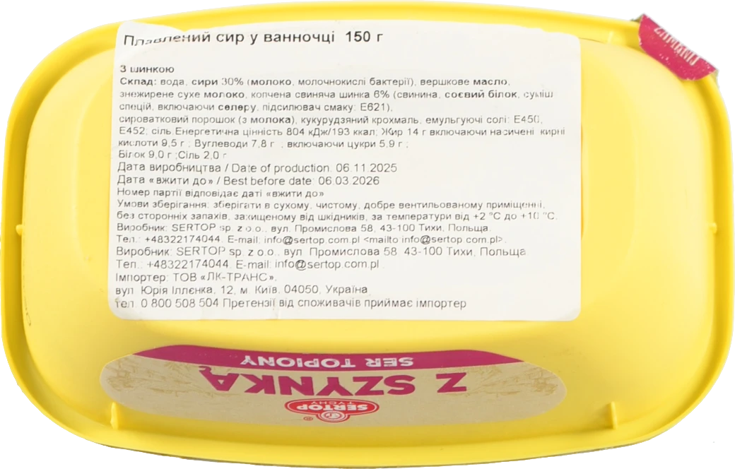- Плавлений сир «З шинкою» у ванночці, 150 г