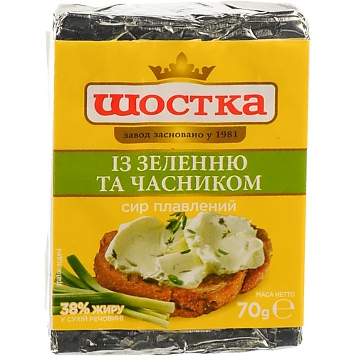 - Сир плавлений 38% із зеленню та часником Шостка м/у 70г