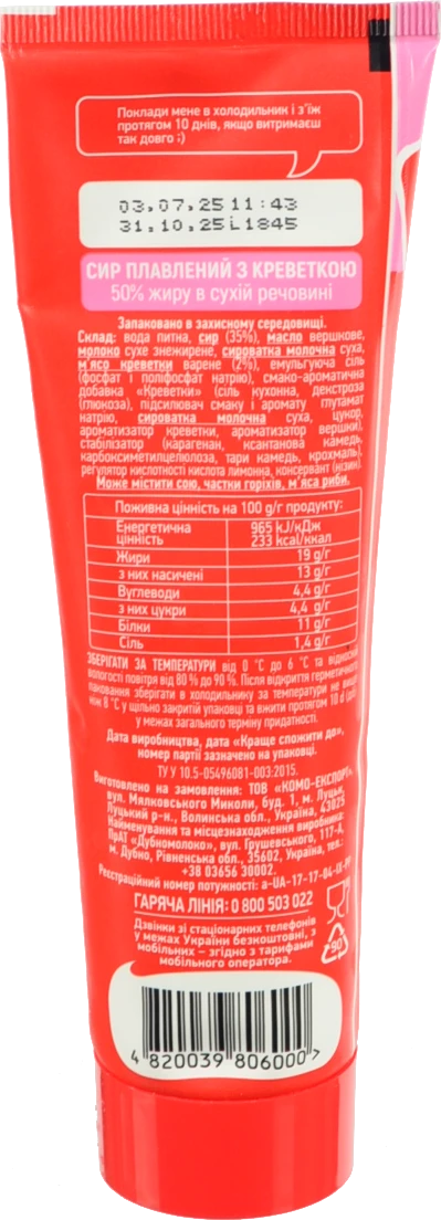 - Сир плавлений Комо з креветками 150г туба