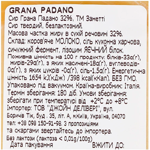 - Сир Занетті 150г 32% грано падано брус