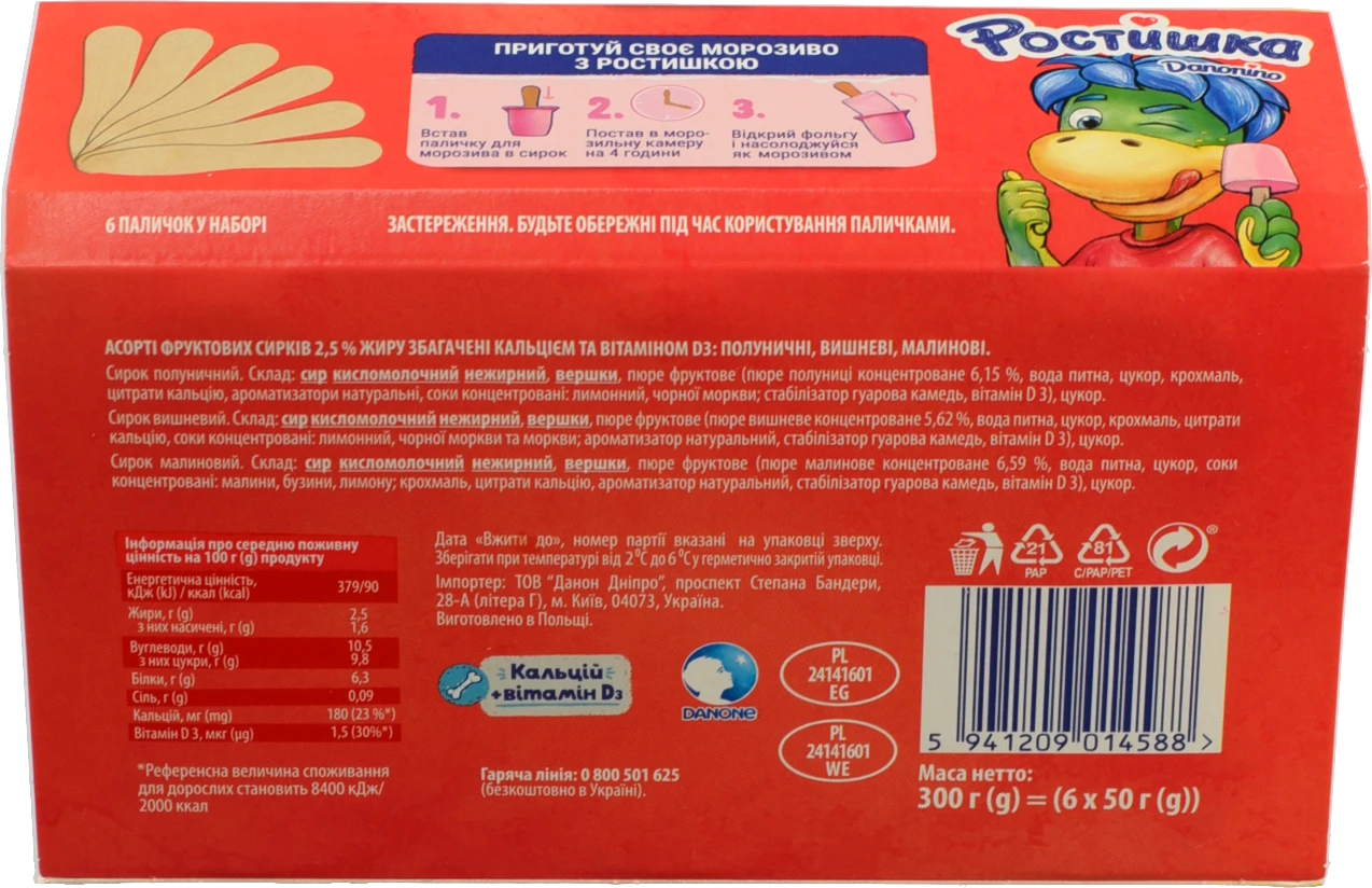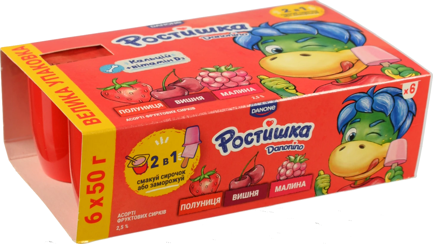 - Сирки Даноніно 50гх6 2.5 асорті полуниця вишня малина