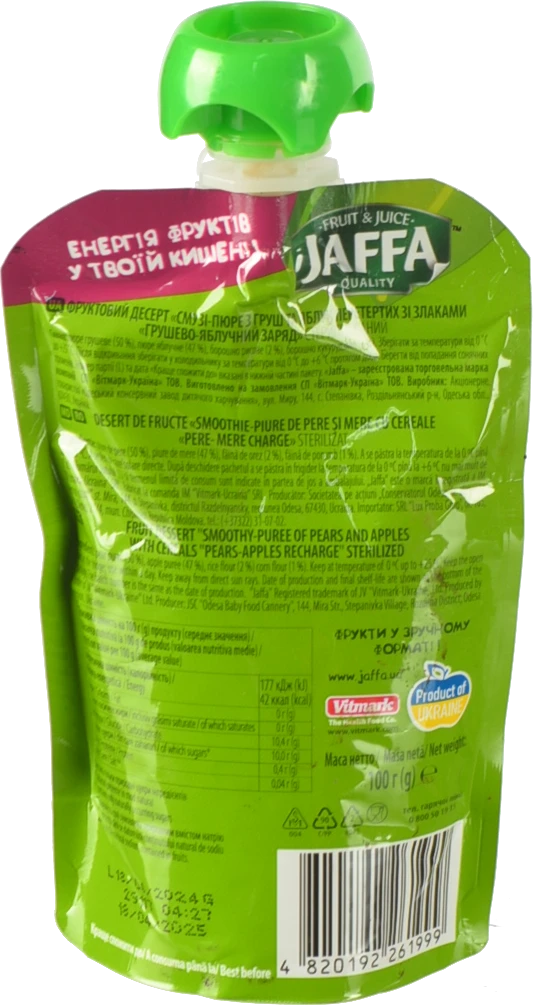 - Смузі-пюре Jaffa Груша-Яблуко зі злаками 100 мл