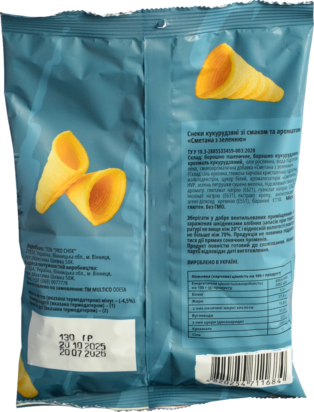 - Снеки кукурудзяні Multico 130г сметана зелень