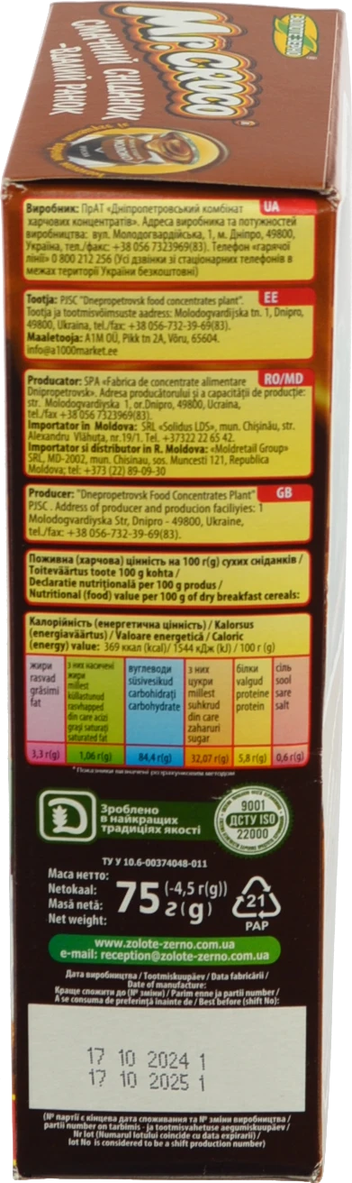 Вид продукції:СНІДАНКИ СУХІ