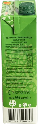 - Сік з м'якоттю пастеризований Груша-яблуко Наш сік т/п 950мл