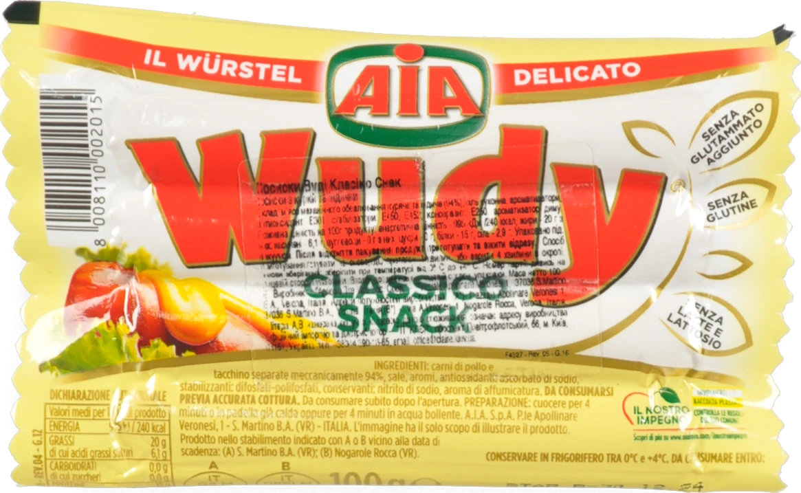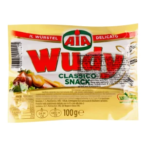 - Сосиски AIA Wudy Classico Snack з курки та індички, 100 г