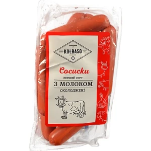 - Сосиски Kolbaso Підкопчені охолоджені, першого ґатунку, вакуумна упаковка, 325 г, - 50%