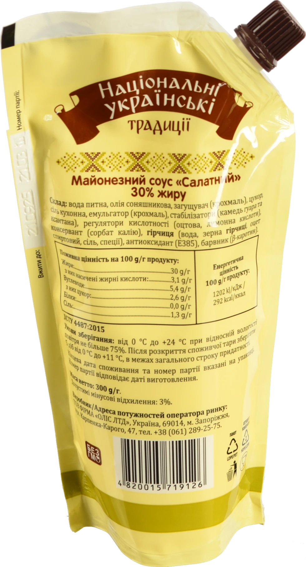 Соус майонезний 30% Салатний Національні українські традиції д/п 300г