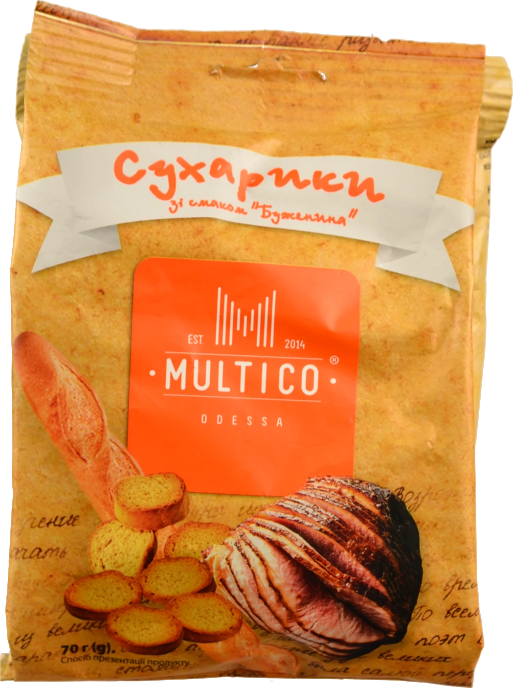 - Сухарики Multico 70г пшеничні багет буженина