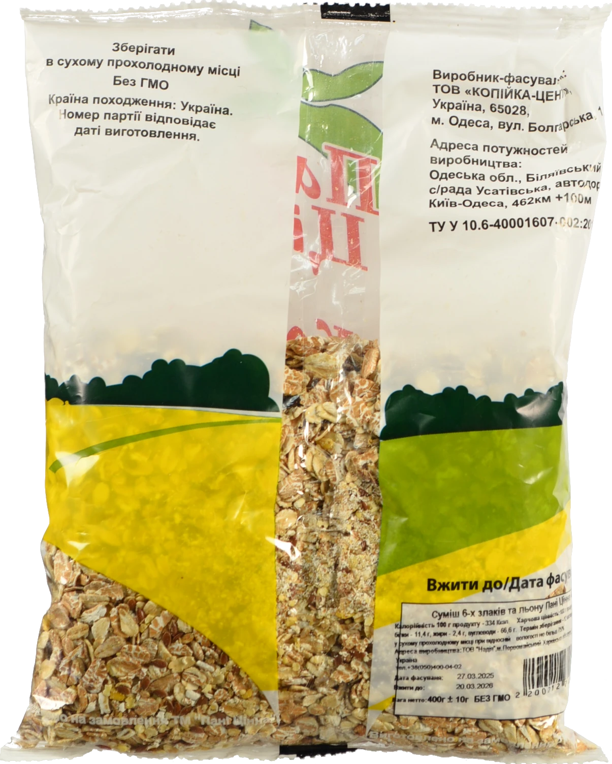 - Суміш 6 злаків та льону Пані Цінна 400г