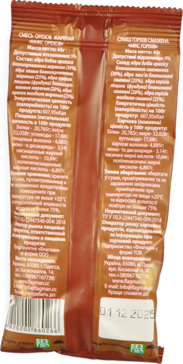 - Суміш горіхів смажена «Мікс горіхів», ТМ «Флагман», 45 г