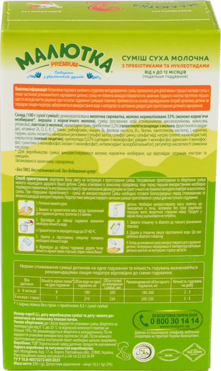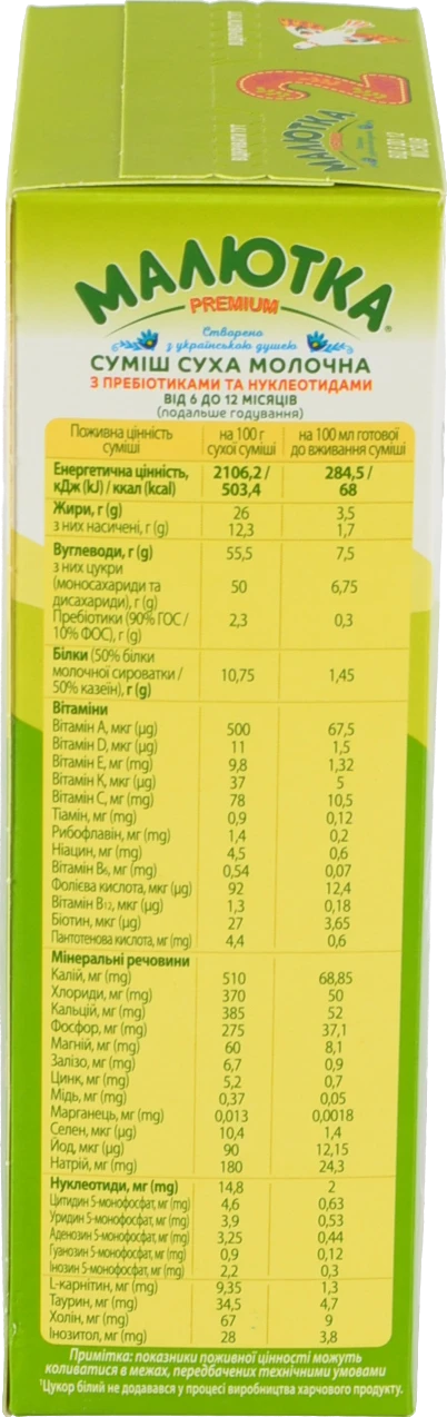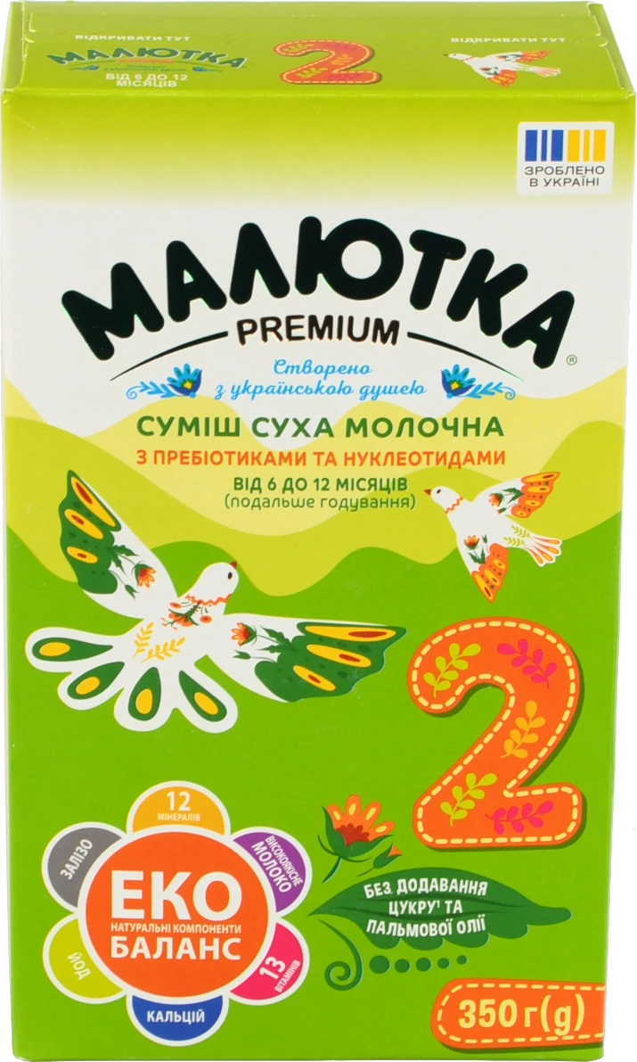 - Суміш молочна суха для дітей від 6 до 12міс №2 Малютка Premium к/у 350г