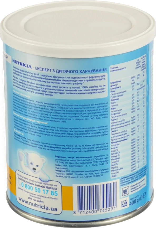 - Суміш молочна суха для дітей від народження Безлактозний Nutrilon з/б 400г