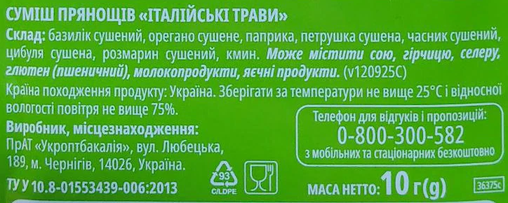 - Суміш прянощів Італійські трави Мрія 10г