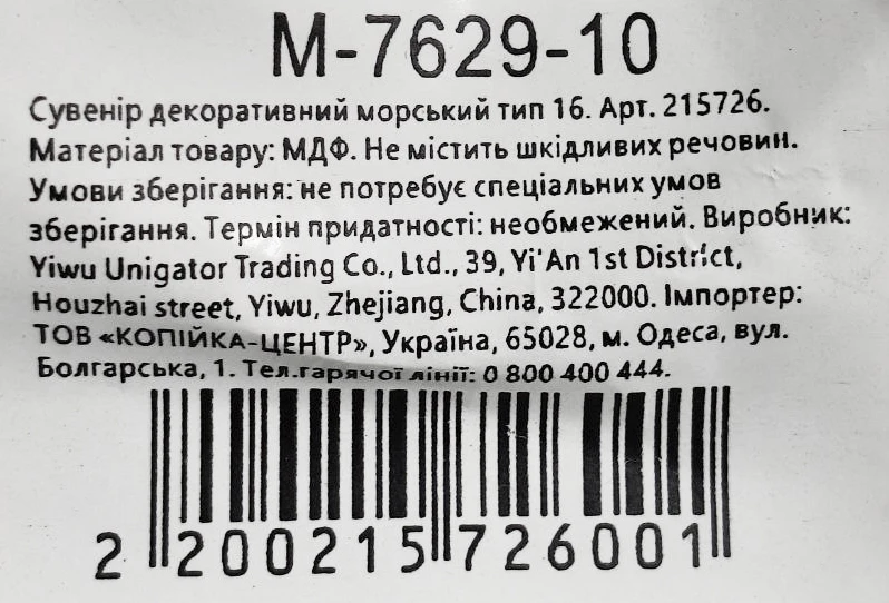 - Сувенір декоративний морський тип 16