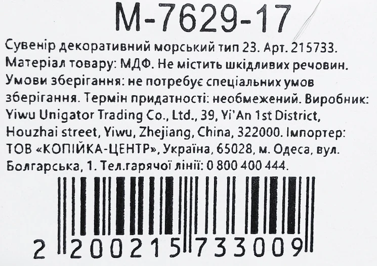 - Сувенір декоративний морський тип 23