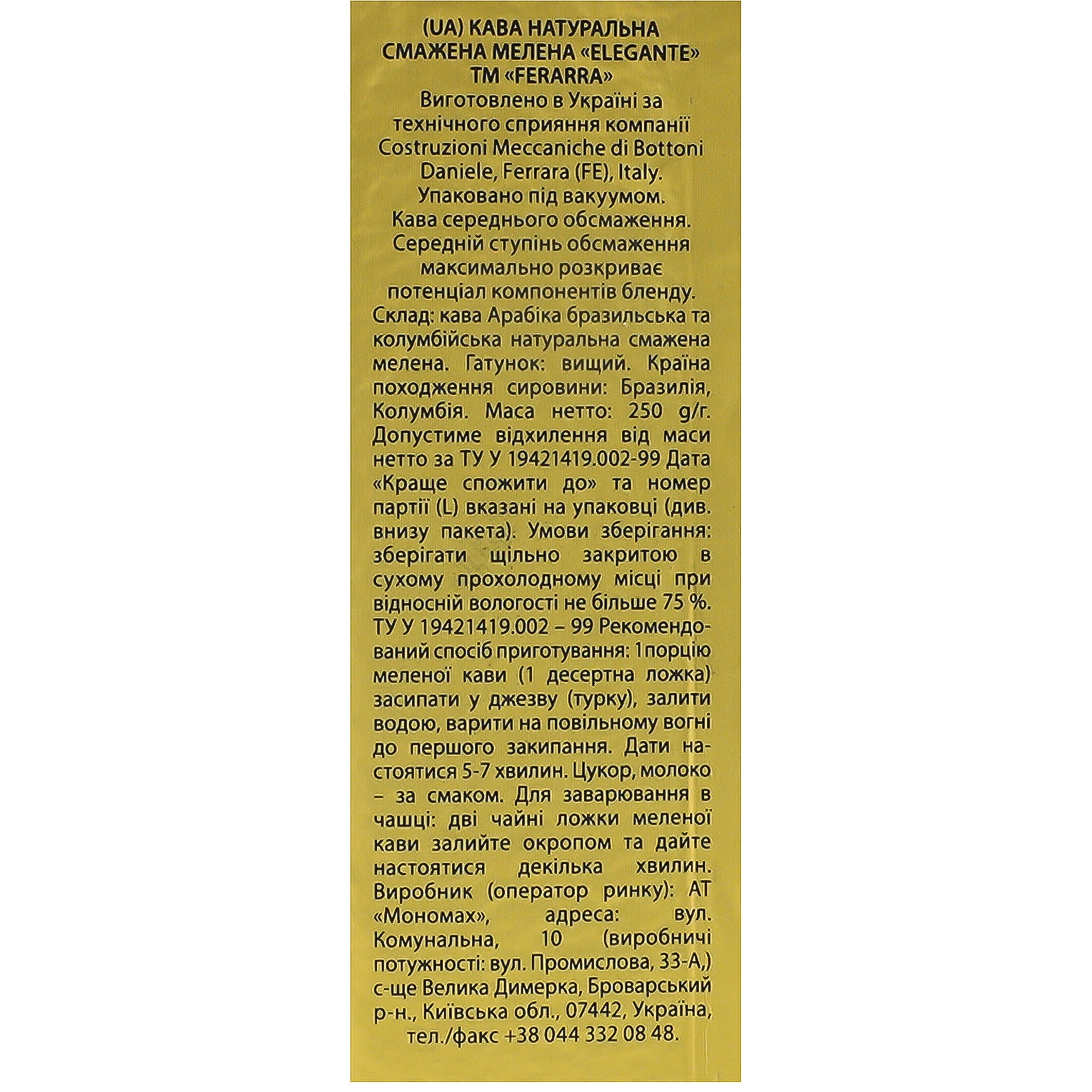 - Кава Ferarra 250г elegante мелена