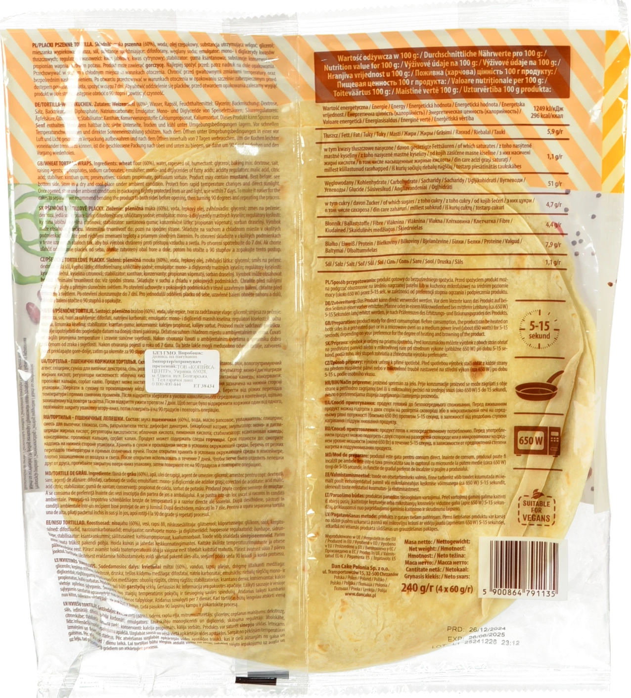 - Тортілья Dan Cake 240г пшенична