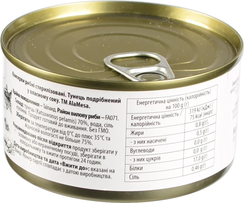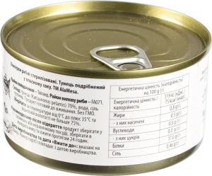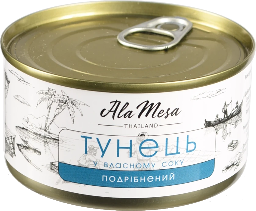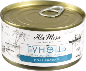 - Тунець Ala Mesa 185г подрібнений у власному соку