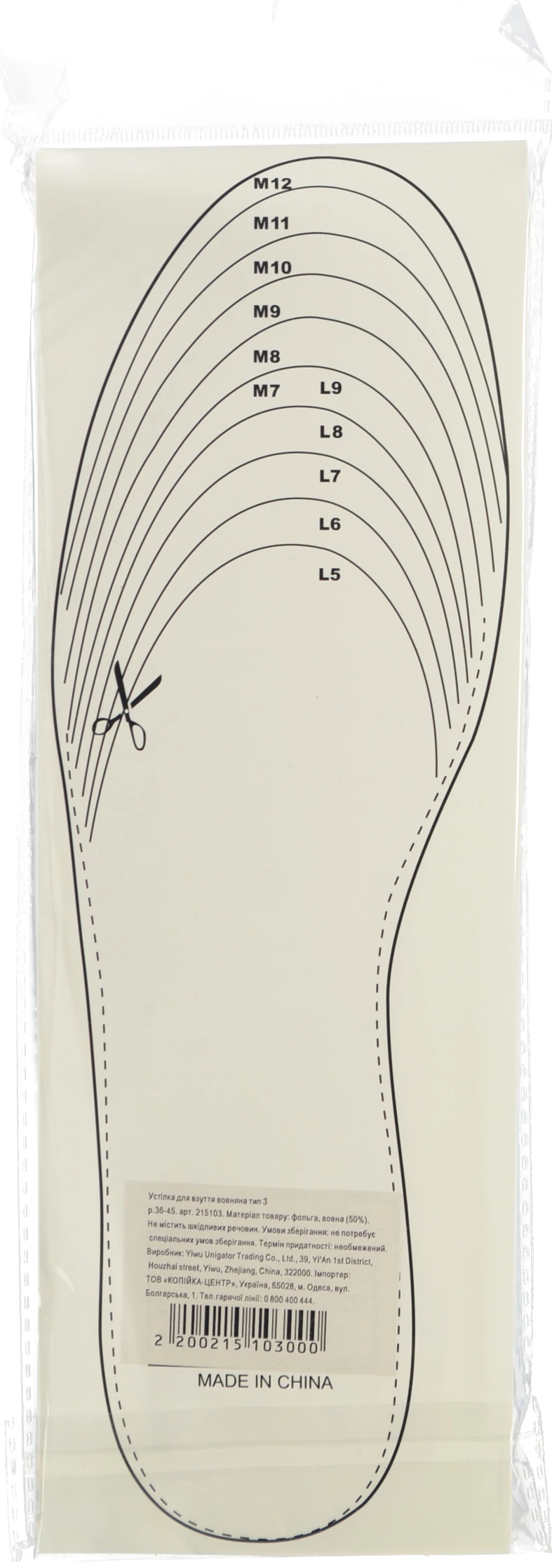 - Устілка для взуття вовняна тип 3 р.36-45