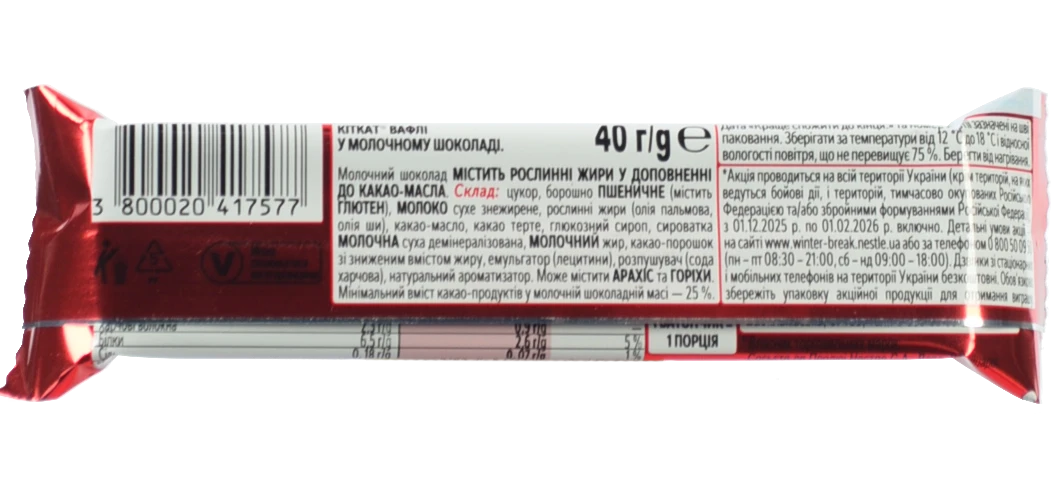 - Шоколадний батончик Nestlé KitKat Chunky молочний, 40 г