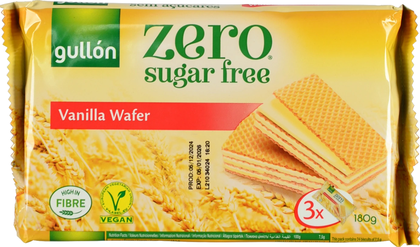 - Вафлі Gullon без цукру з ванільною начинкою 180г
