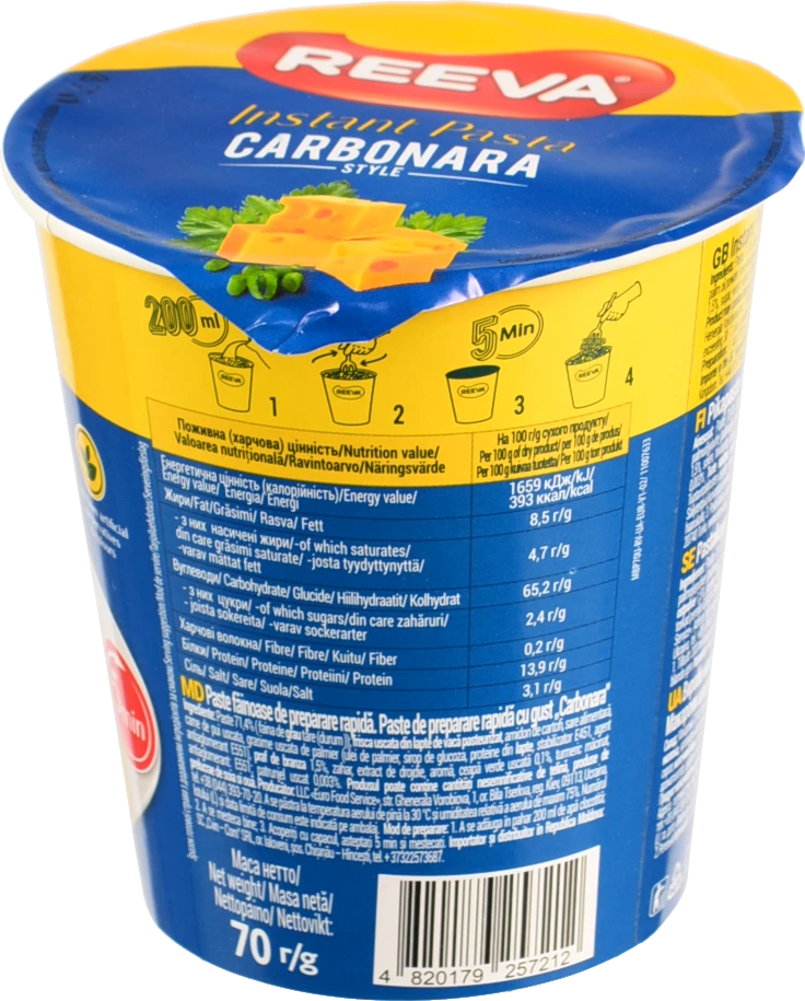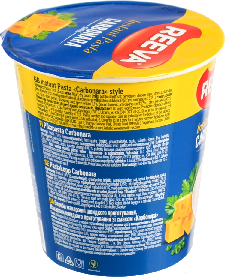 - Вермішель Reeva 70г карбонара ст.
