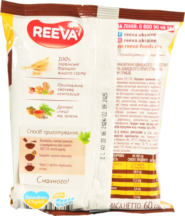 - Вермішель швидкого приготування зі смаком грибів Reeva 60г