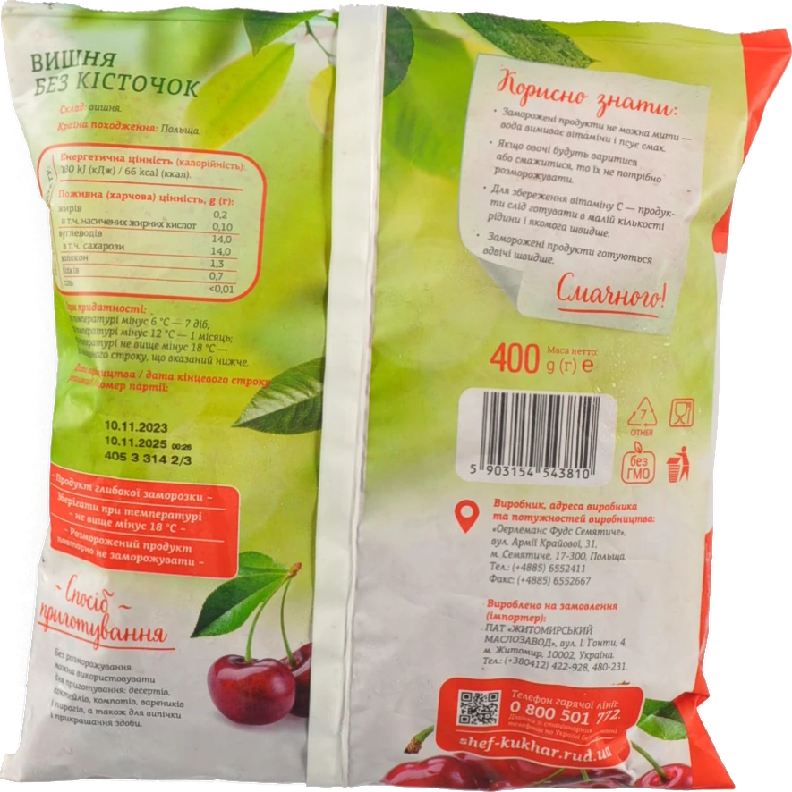 Вид продукції:ВИШНЯ ЗАМОРОЖЕНА