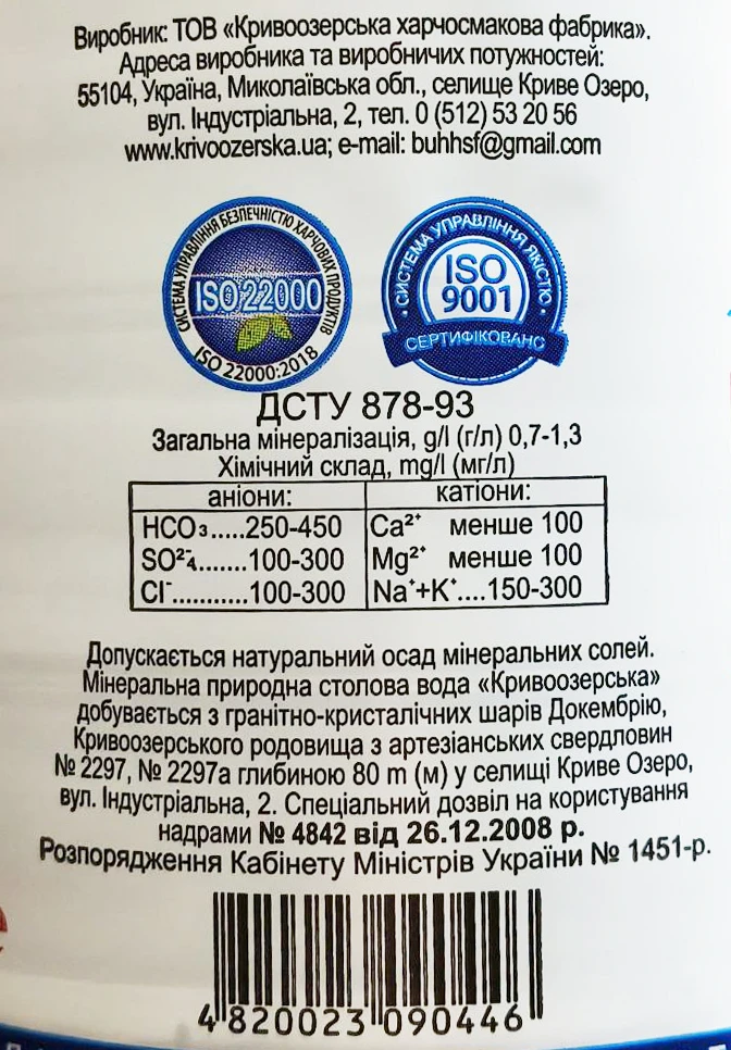 Вода мінеральна природна столова негазована Кривоозерська 2л