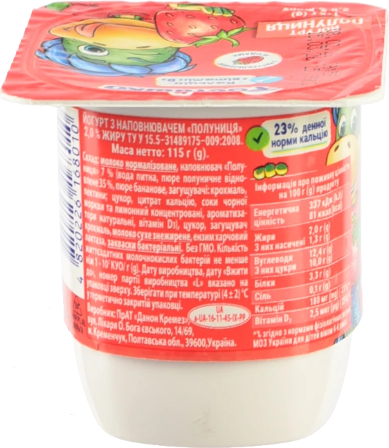 - Йогурт 2% Полуниця Ростишка 115г