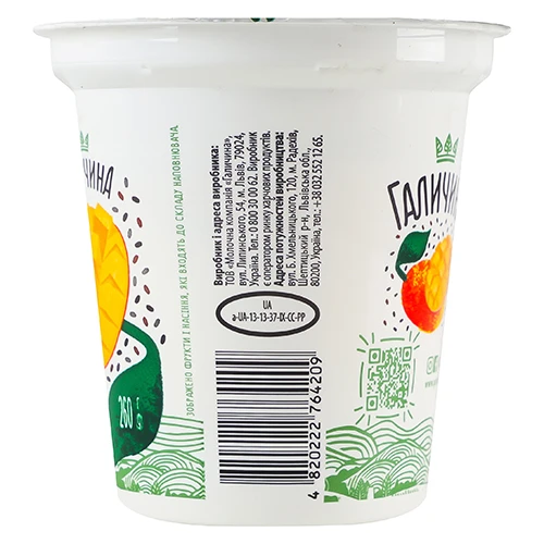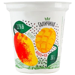 - Йогурт Галичина 260г 2.2 манго-чіа ст.